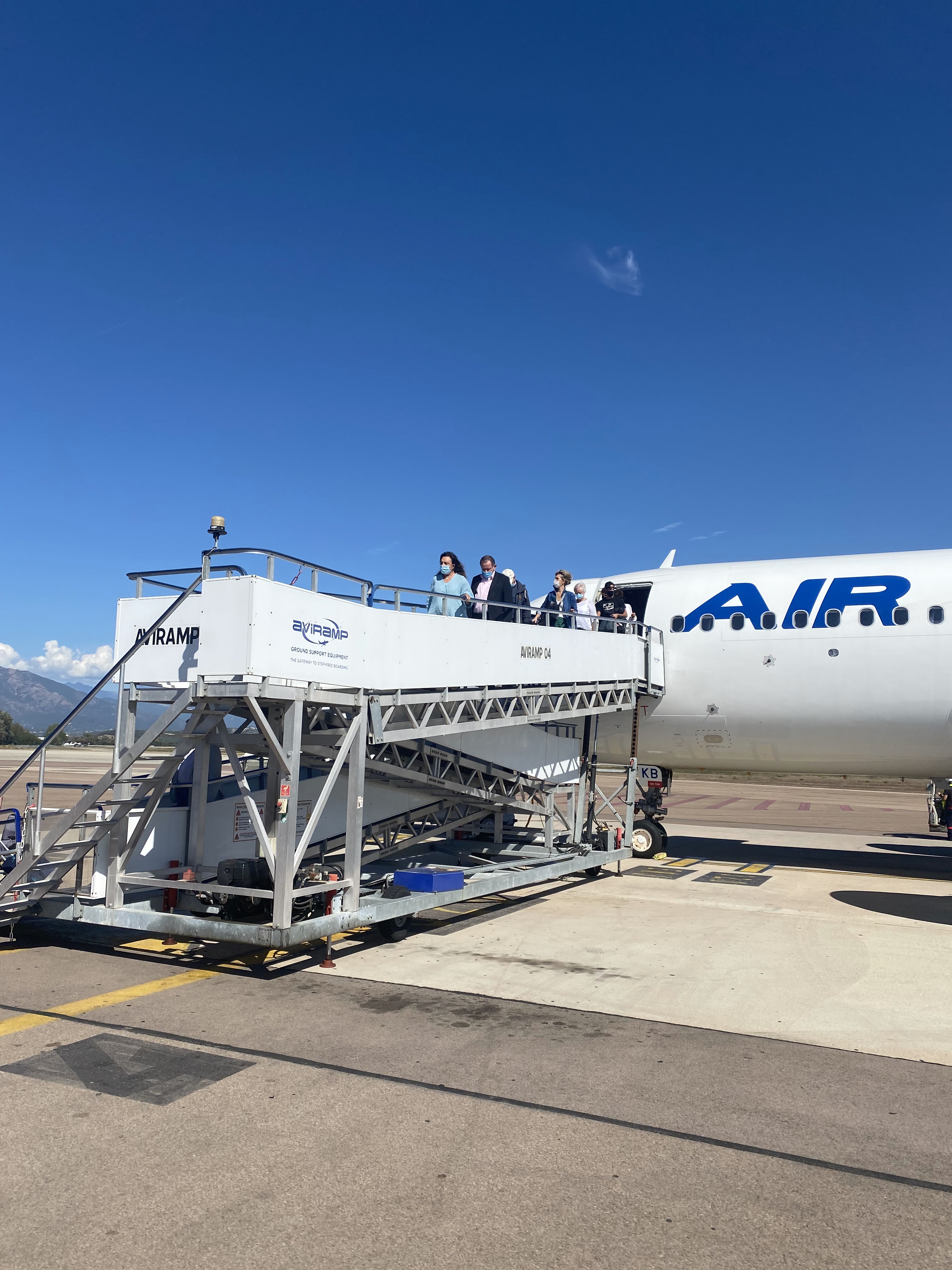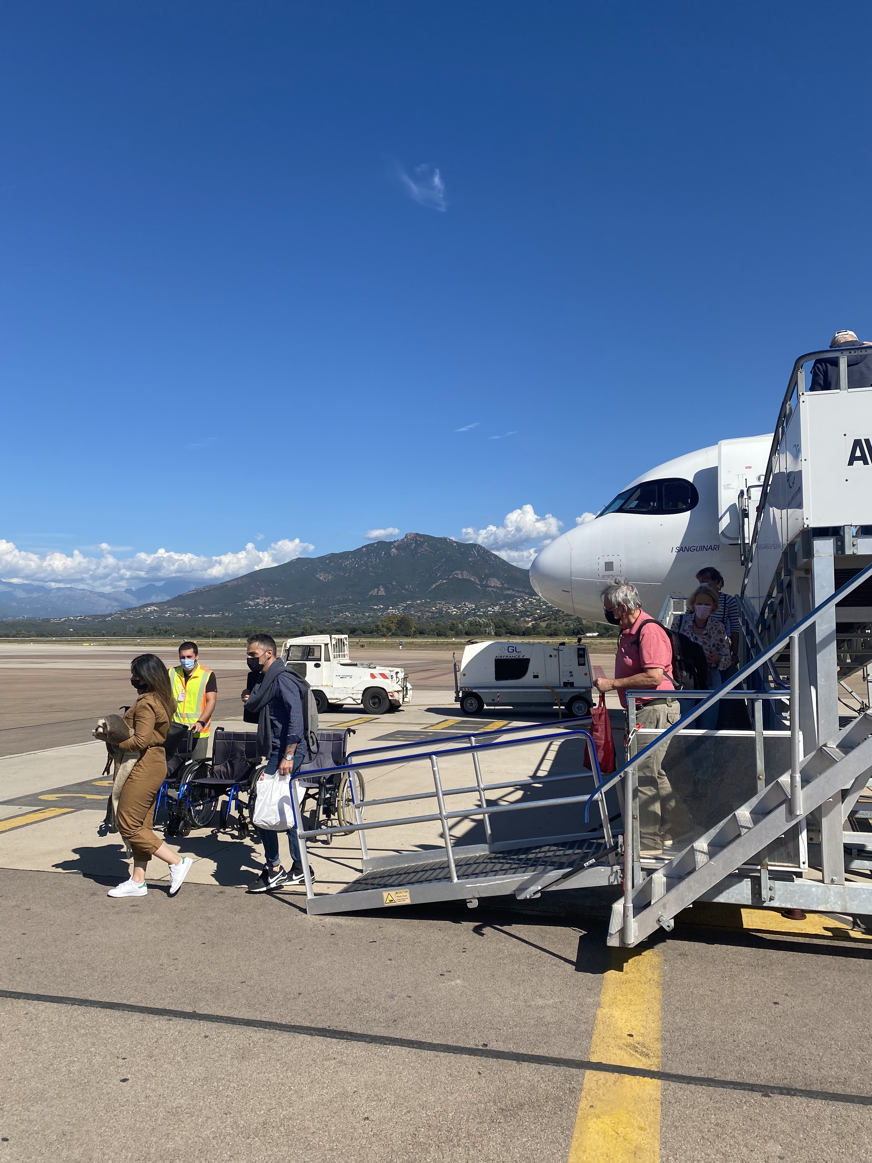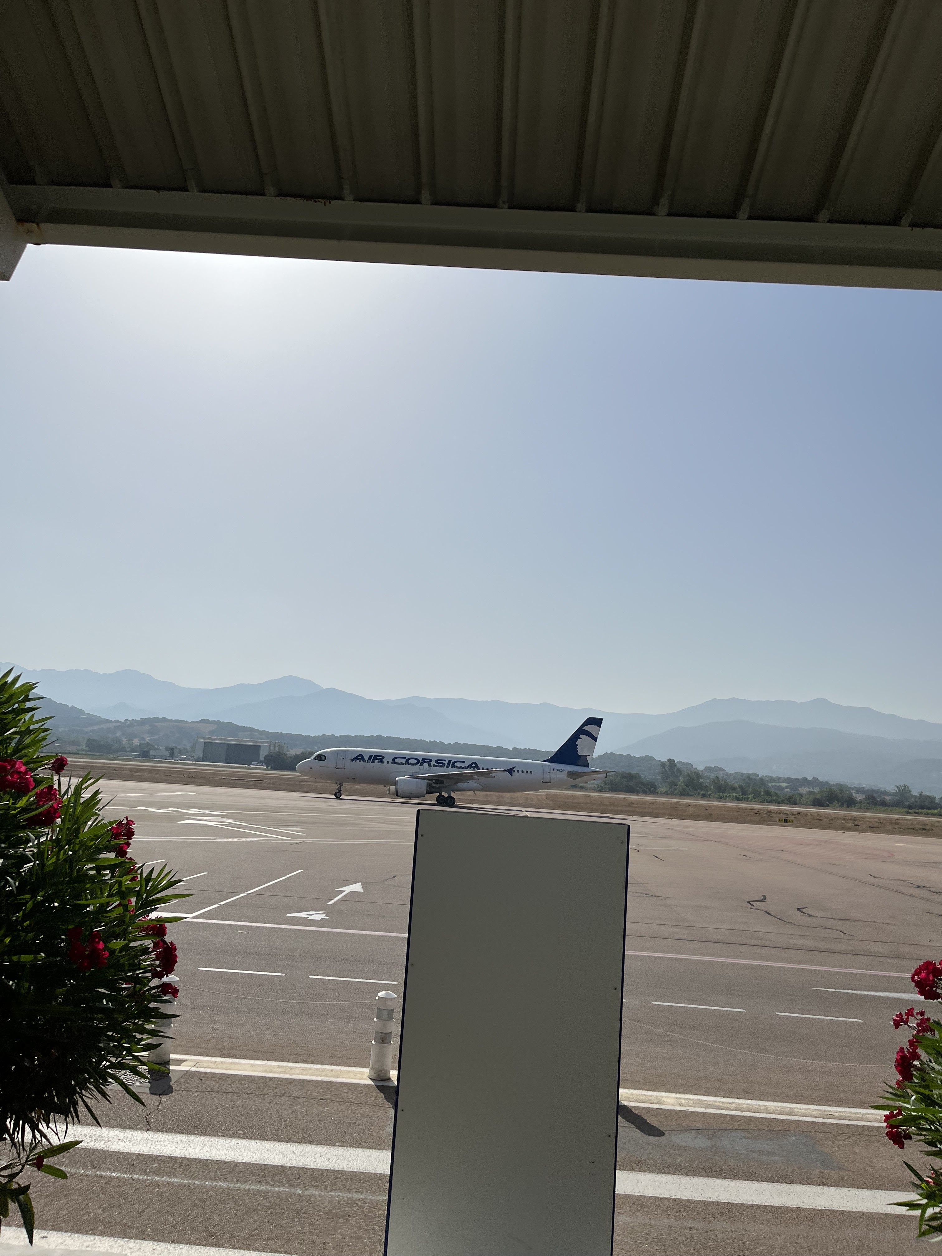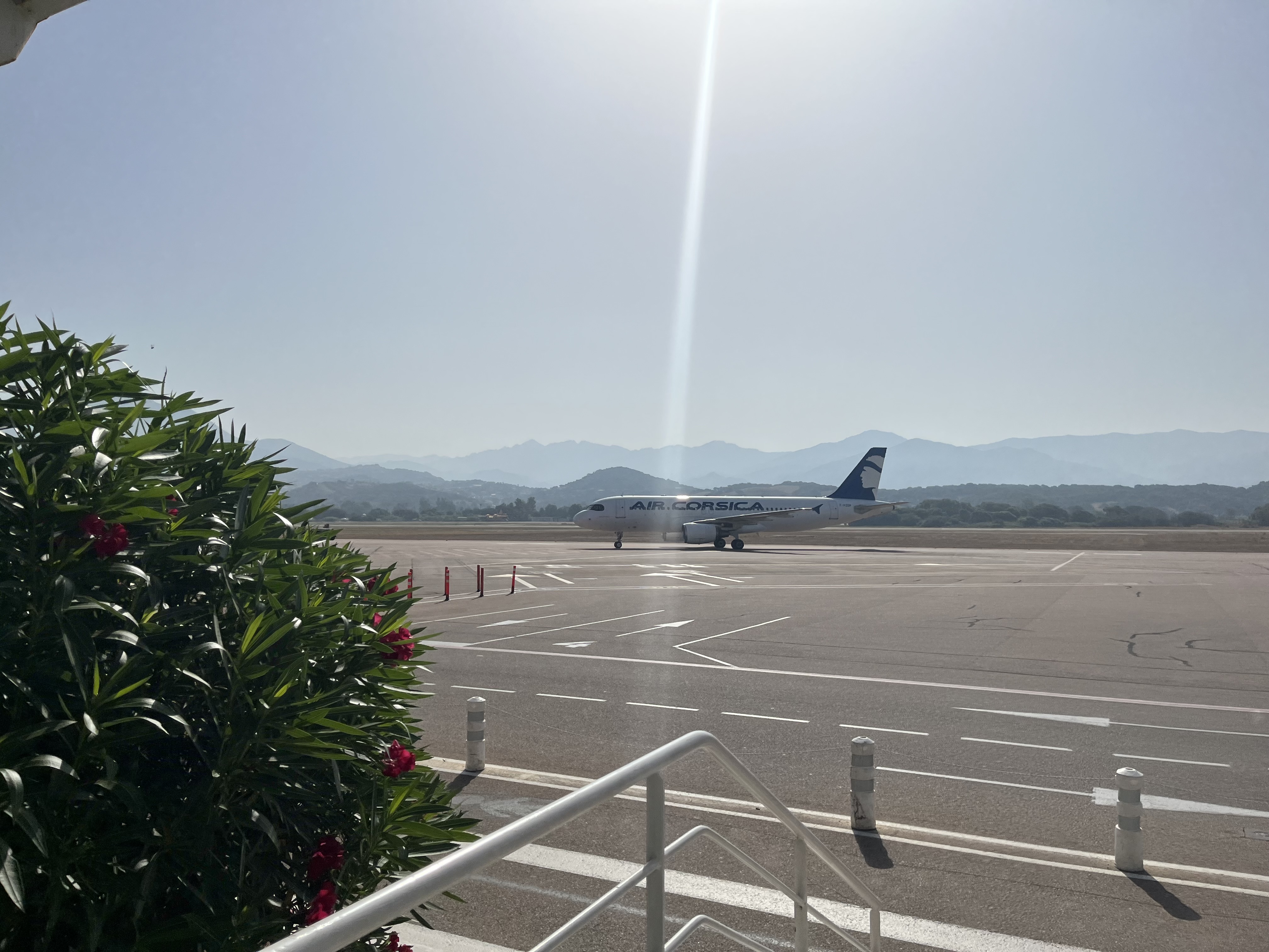 L’avion atterrit 20mn a l’avance exceptionnel, le capitaine et l’équipage d’une sympathie exceptionnelle air corsica, l’aéroport d’une propreté impeccable, les mesures de sécurité pour le covid 19 sont bien appliqué, l’avion atterri face à un paysage paradisiaque, il faut bien le préciser, un service de location de voiture se trouve sur le parking à 1mn ce qui est parfait, le soleil est au rdv….