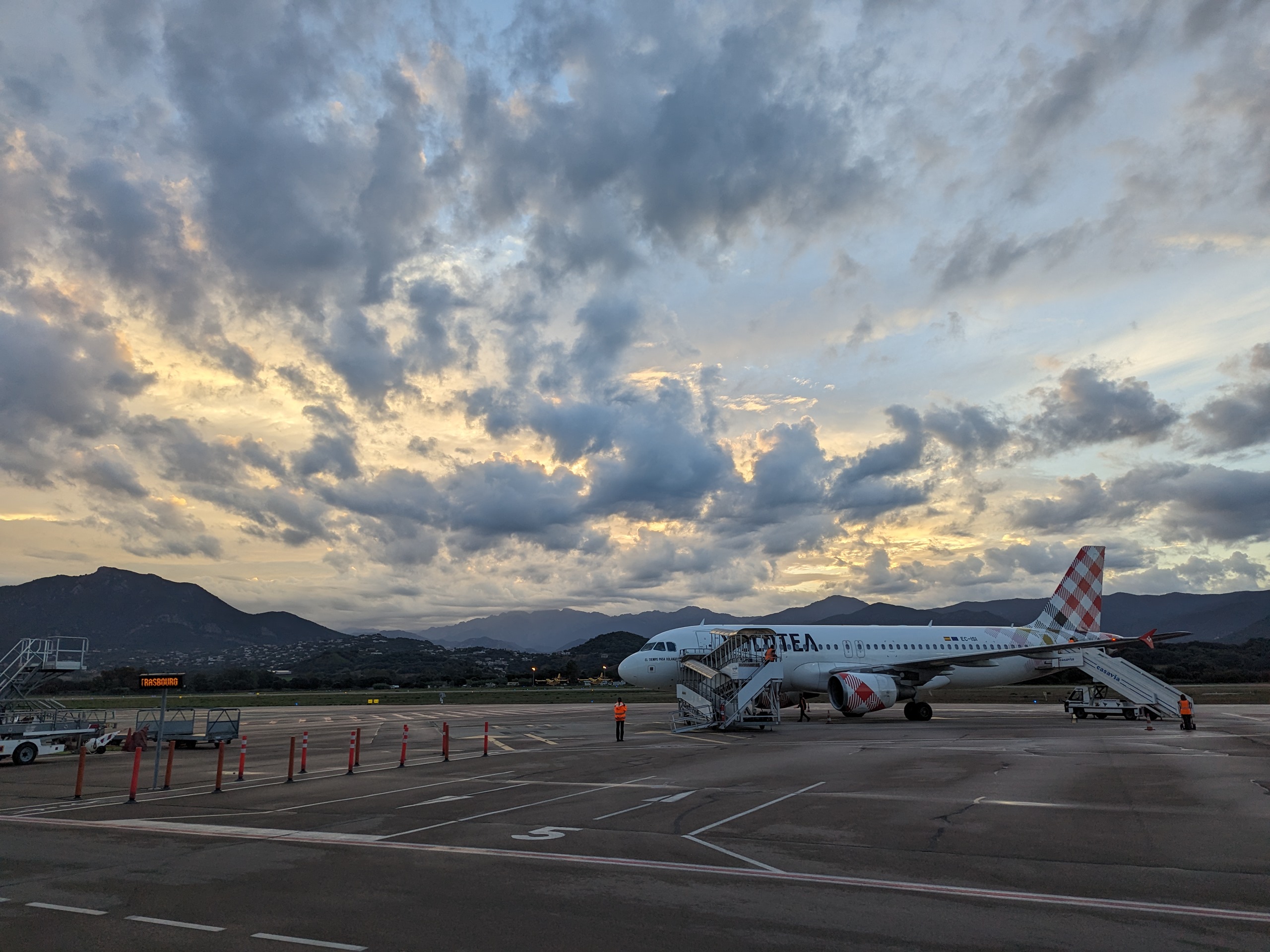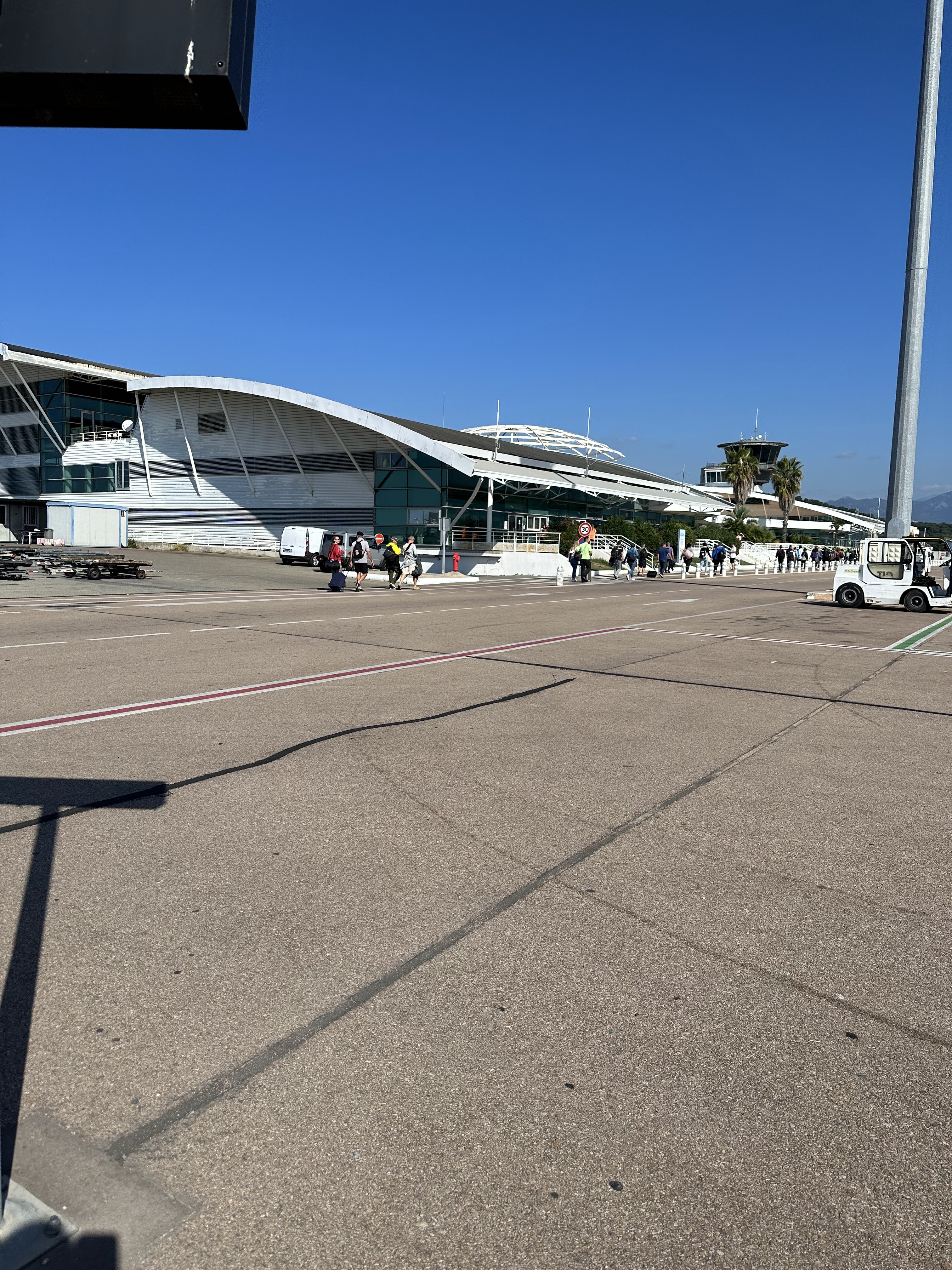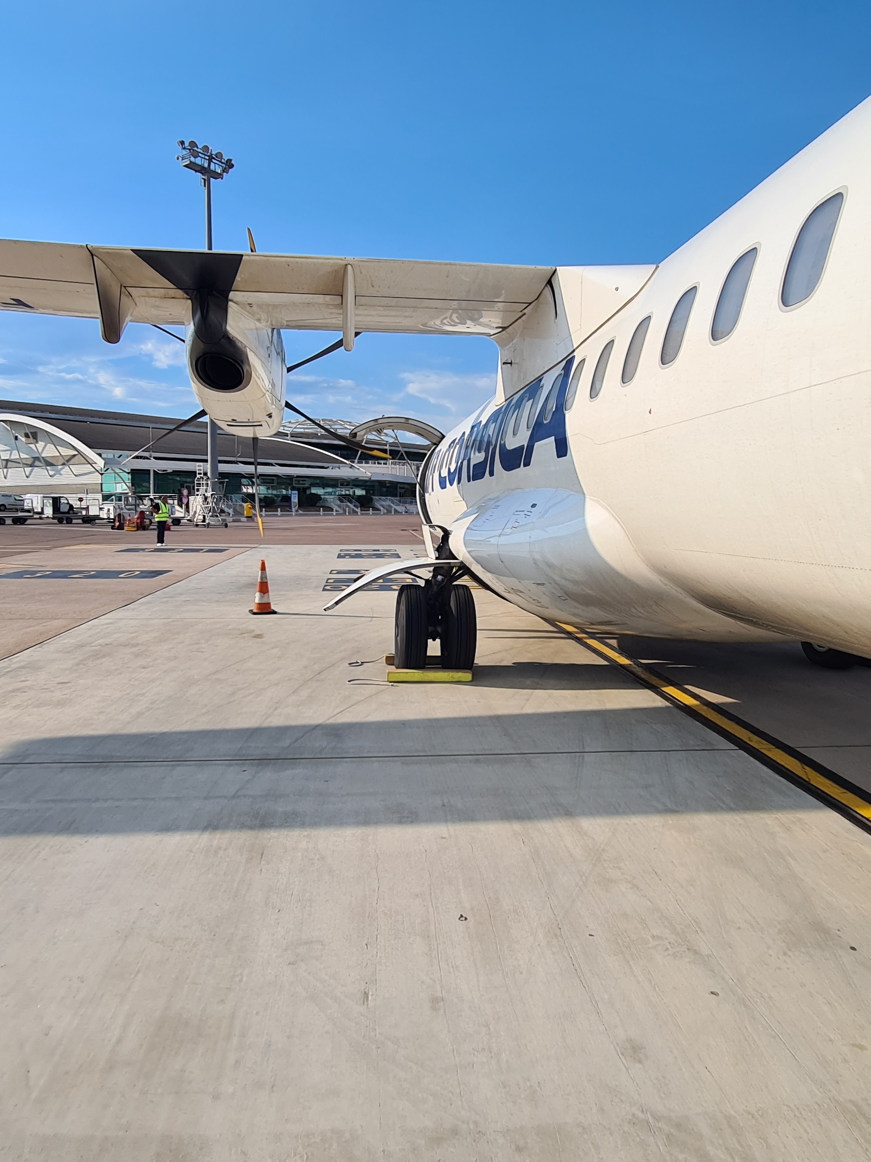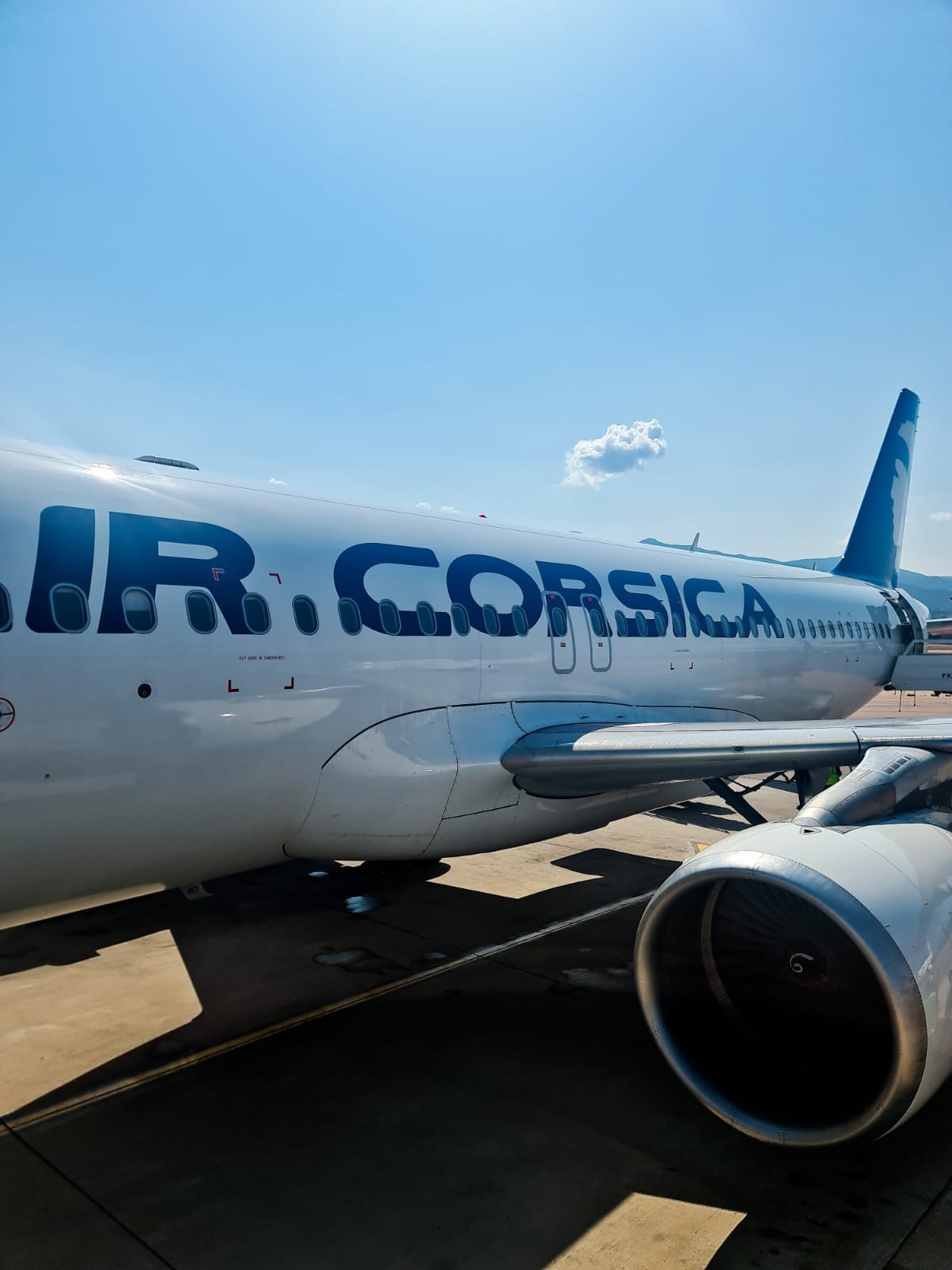 L’avion atterrit 20mn a l’avance exceptionnel, le capitaine et l’équipage d’une sympathie exceptionnelle air corsica, l’aéroport d’une propreté impeccable, les mesures de sécurité pour le covid 19 sont bien appliqué, l’avion atterri face à un paysage paradisiaque, il faut bien le préciser, un service de location de voiture se trouve sur le parking à 1mn ce qui est parfait, le soleil est au rdv….