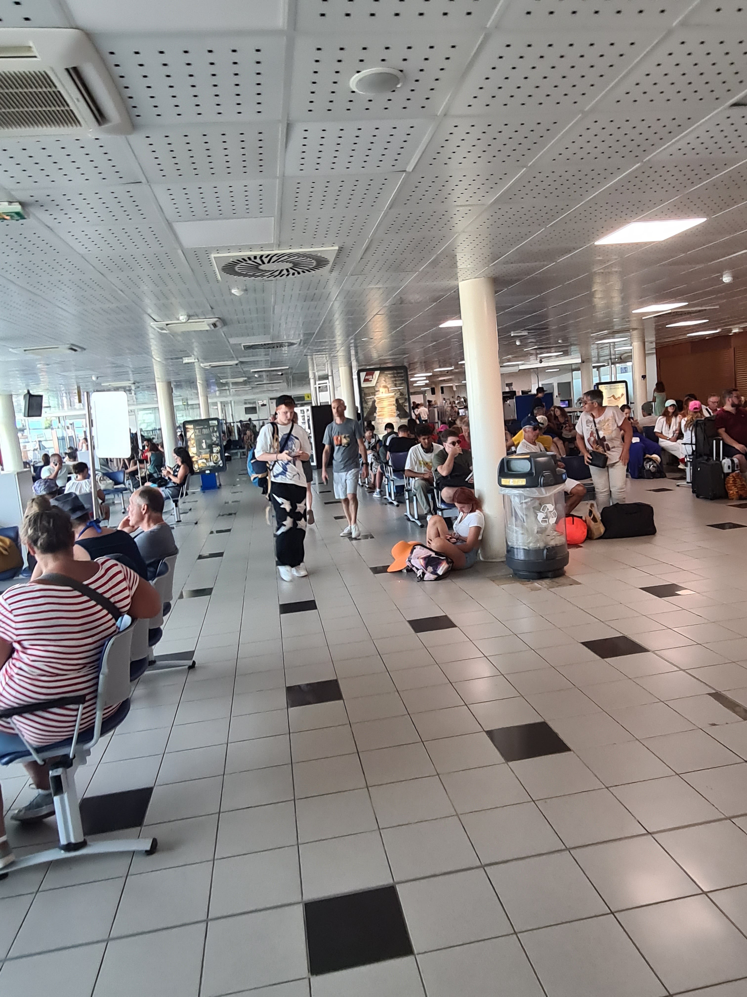 Une horreur :-/ Aéroport sur peuplé à la mi juin on se marche les uns sur les autres. Une attente incompréhensible aux toilettes. Seulement quelques sièges pour s’asseoir En attendant son vol. Je n’imagine même pas le rush d’un mois d’août. Il serait peut-être bien de penser à agrandir un peu les locaux au vue de la fréquentation actuelle. Ce n’est pas l’aéroport où l’on a envie de boire un café tranquillement pour patienter. Dommage aussi pour les petits commerces à l’intérieur :-S