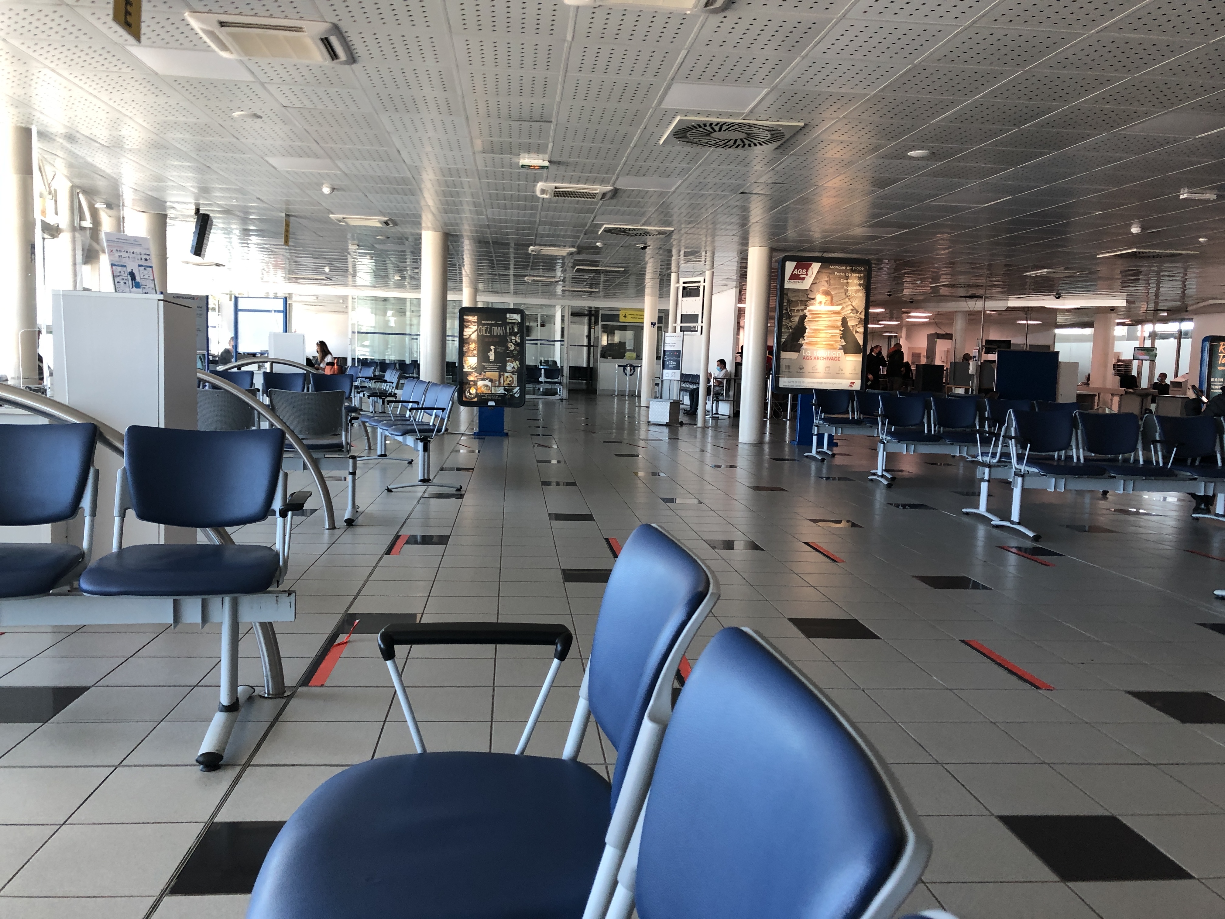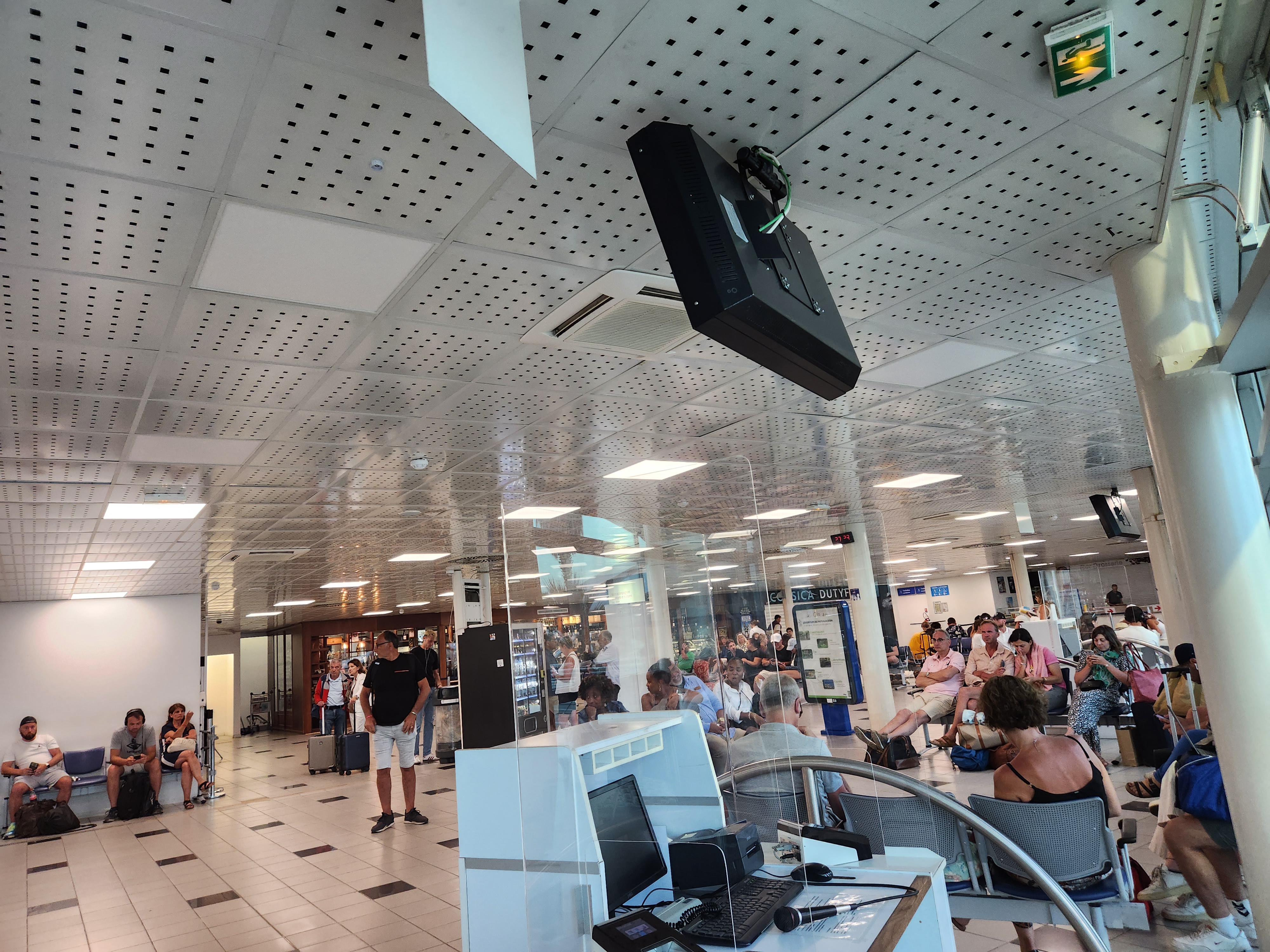 En dessous de 0 4 guichets d’ouverts sur 19 possibles … Tous les vols ont 3h de retards mais on continue d’entasser les passagers en salle d’embarquement. Tant qu’il y a de la place pour s’asseoir par terre aucun souci !! Covid made in Corse Les commerces type duty free vont venir la police pour sortir des personnes âgées qui faute de place sont assises devant leur boutique !! Hallucinant Du jamais vu ! Aucun geste barrières de respecté de la part du personnel qui est vraiment horrible !! Au revoir la corse je ne reviendrai plus ! Merci