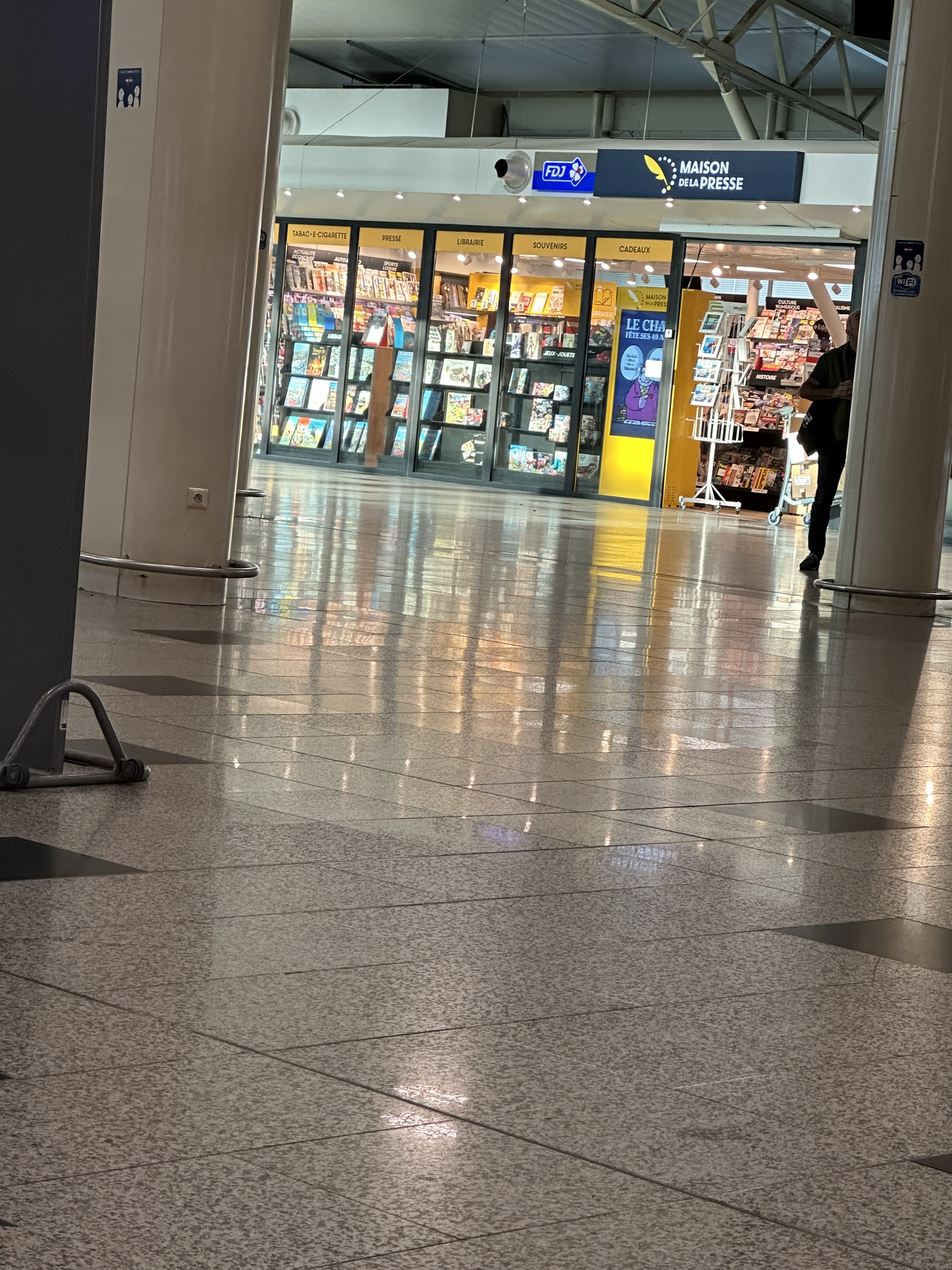 Tout l’aéroport niquel pas de problème sauf au moment d’arrivé en salle d’embarquement ! Au magasin dutyfree !! Le vendeur avec la chemise ouverte et très hautain qui prend les gens de haut , très désagréable ça ne donne pas envie d’acheter !