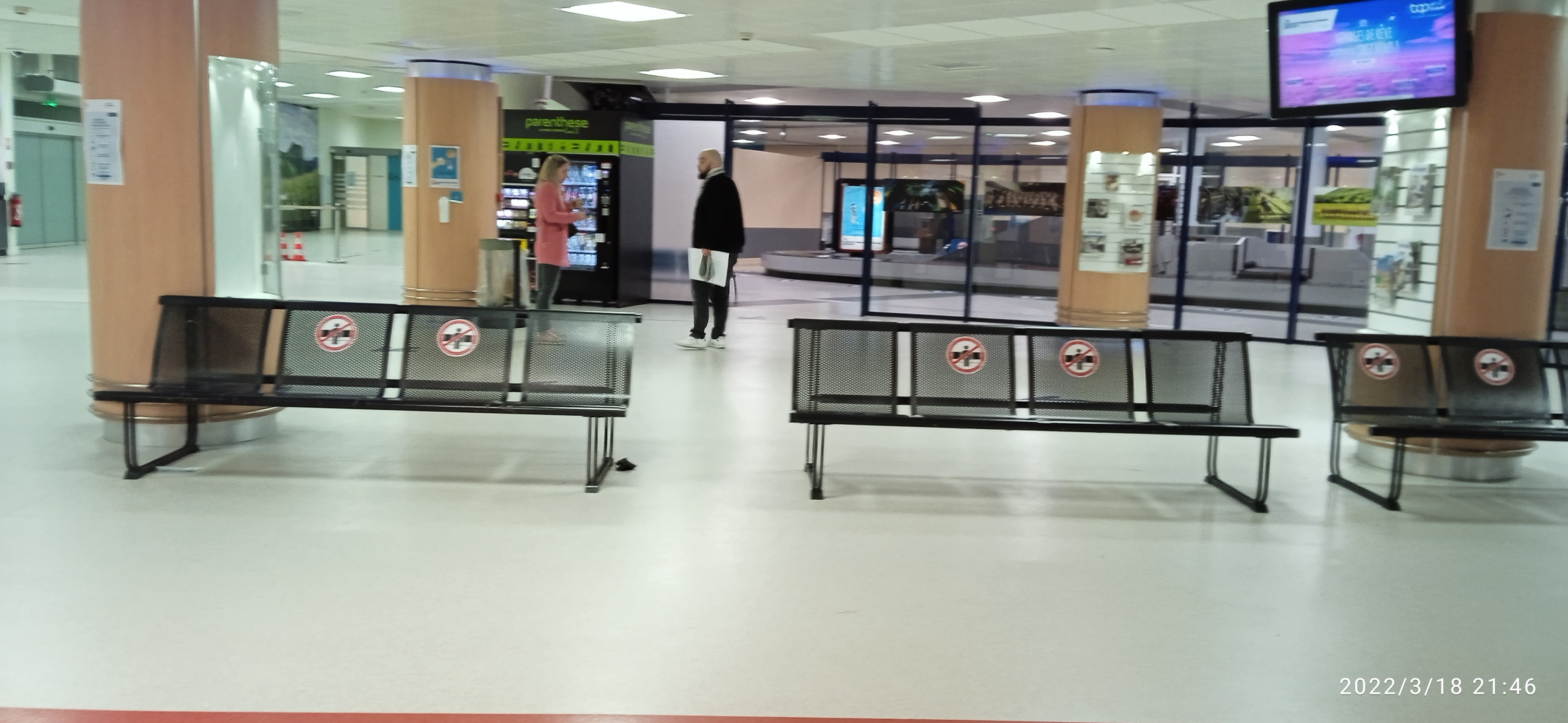Personnel aimable comme une porte de prison. Distributeurs HS. Pas de lumière dans la salle d'attente. Merci pour les auvergnats de ce bel aeroport !