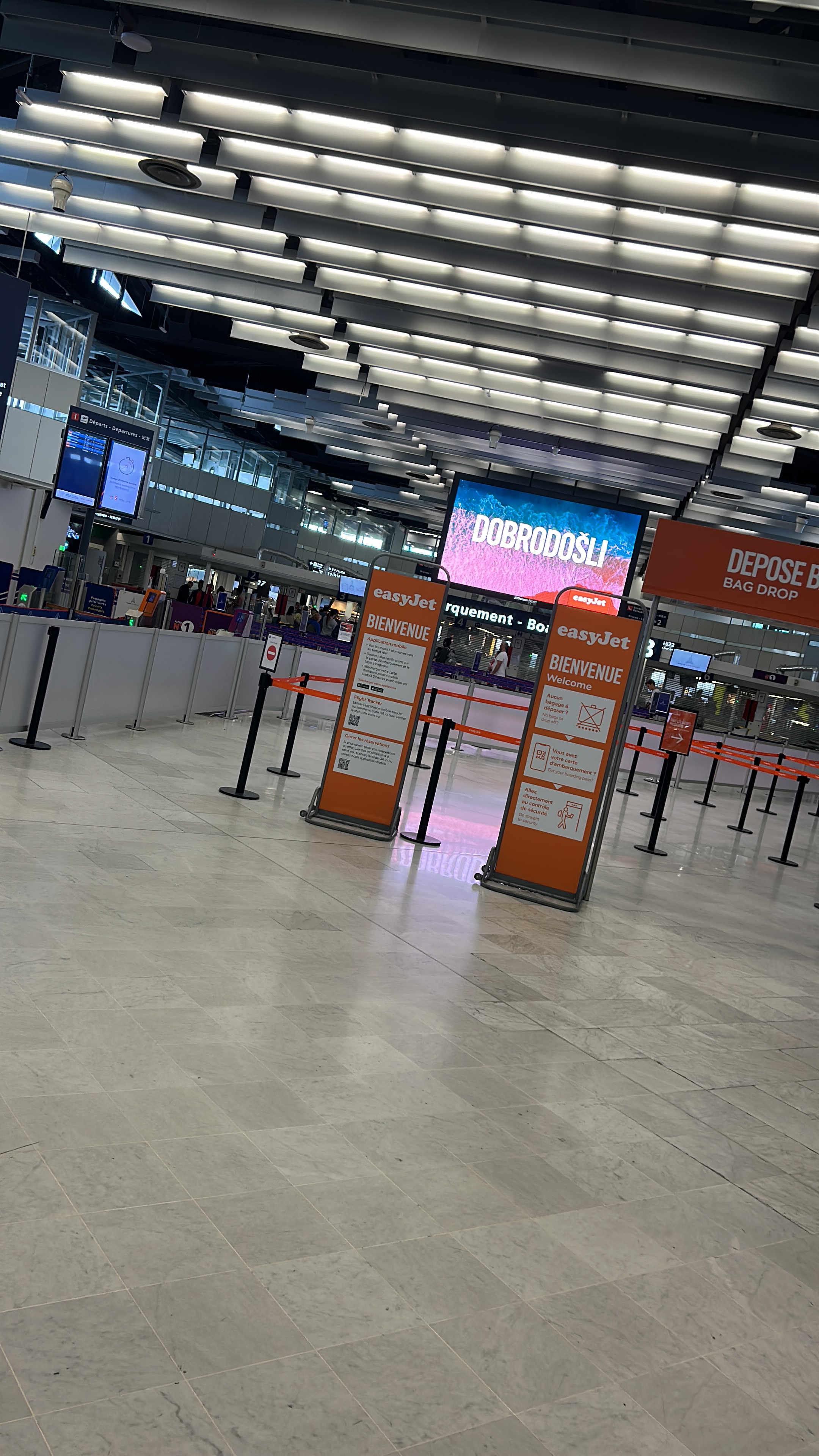 Une grosse pagaille pour être déposé par le taxi a proximité d'Orly 1.... déposé à Orly 4... Il ne faut pas être en retard ou avoir du mal a se déplacer... Ne pas accepter de 'e pas être déposé devant le terminal 1 Impossible de prendre un petit déjeuner...c'est la cata...une file d'attente sans fin...sous dimensionné pour un jour de grande affluence...de progrès a fair pour être au top pour 2024...