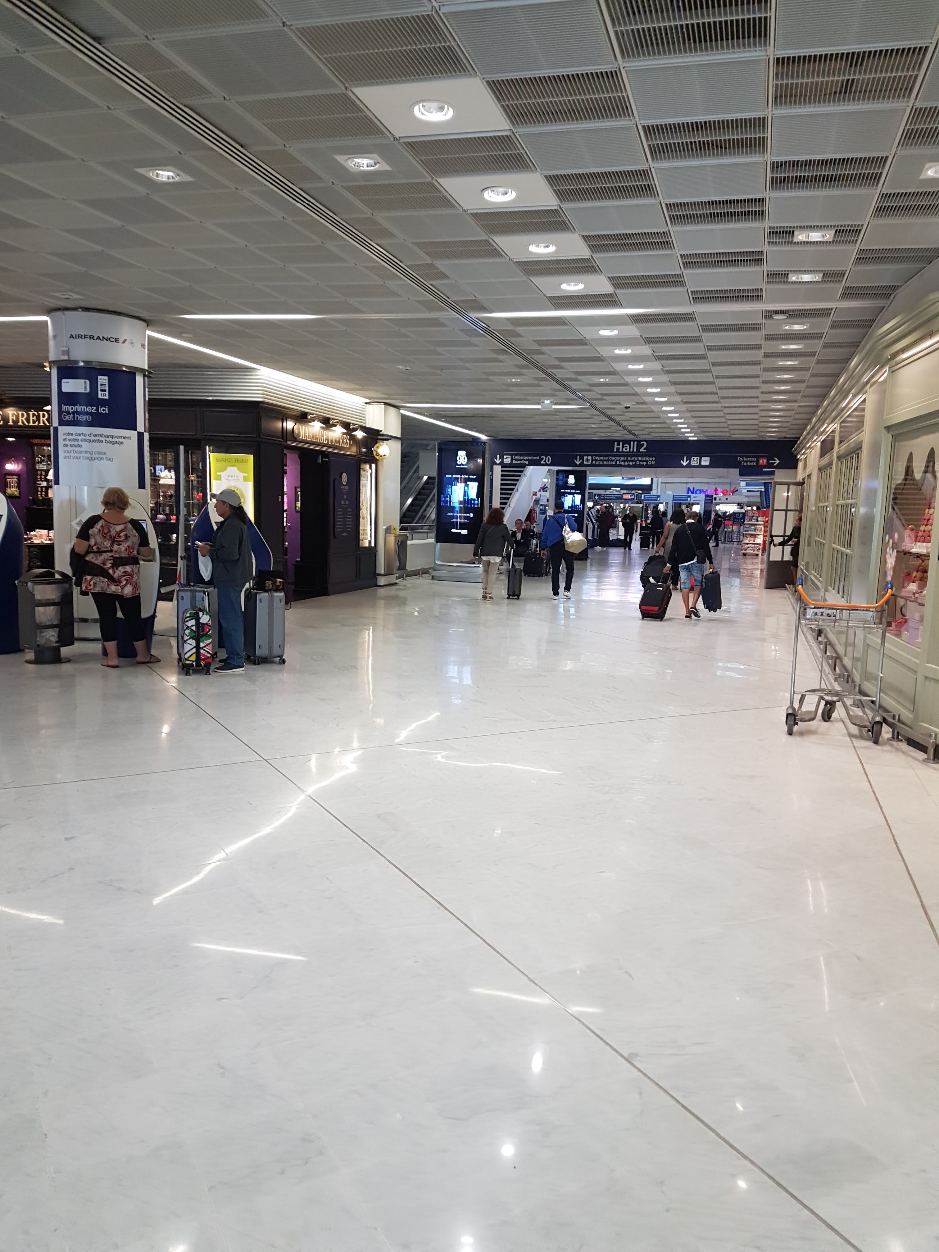 Un hall d'aéroport où il y a tout ou presque les sièges ont des prise dans la salle d'attente les toilettes sont propres si vous avez un Skype priority le salon Air France est super confortable et surtout moins bruyant
