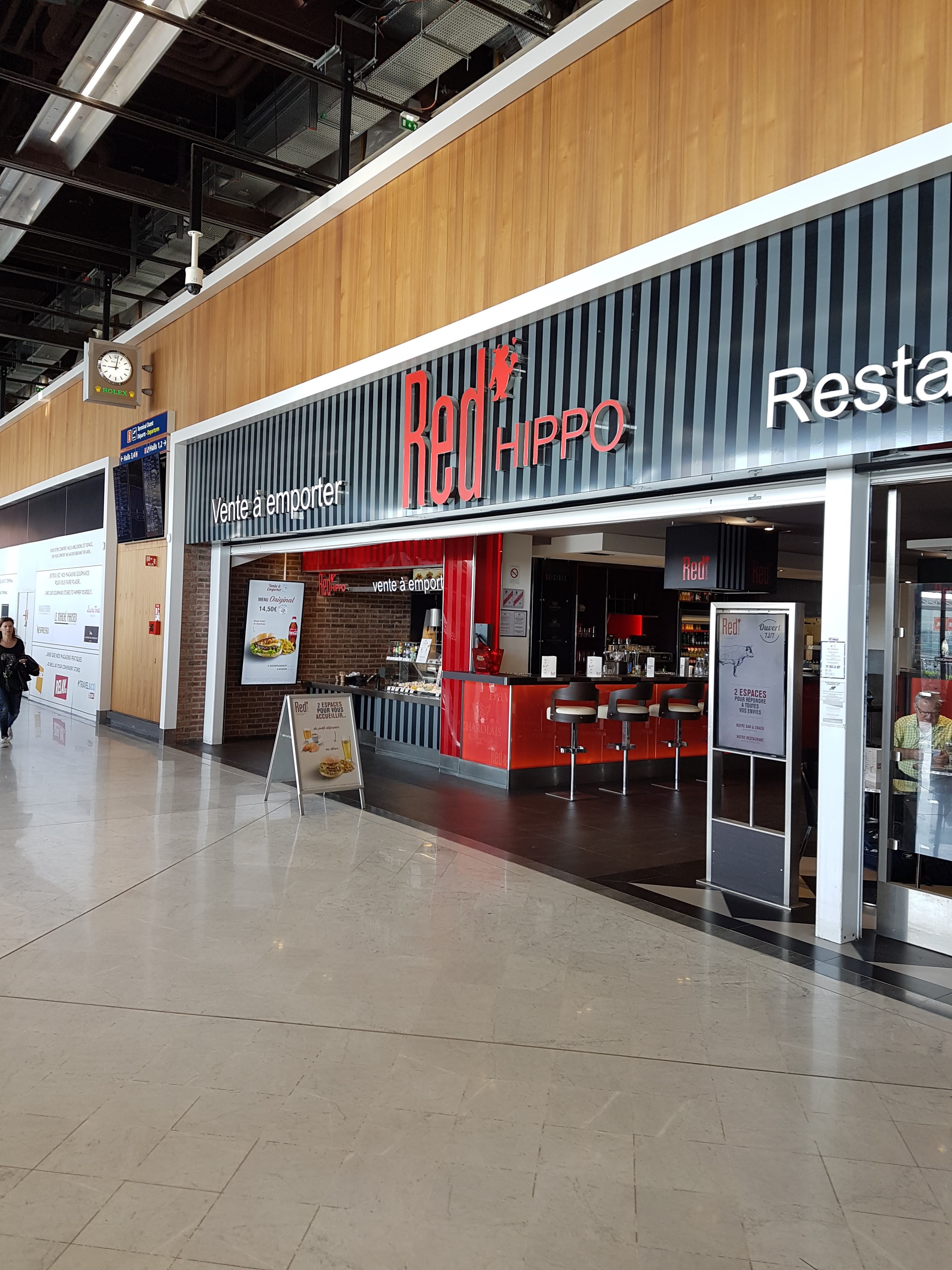 Dans les salles d'embarquement, il serait judicieux d'installer des prises de rechargement USB sur ou au niveau des tables autour des bars. Même s'il existe des bornes dédiées à cela, ce serait un plus de pouvoir continuer à travailler tout en rechargeant son smartphone.